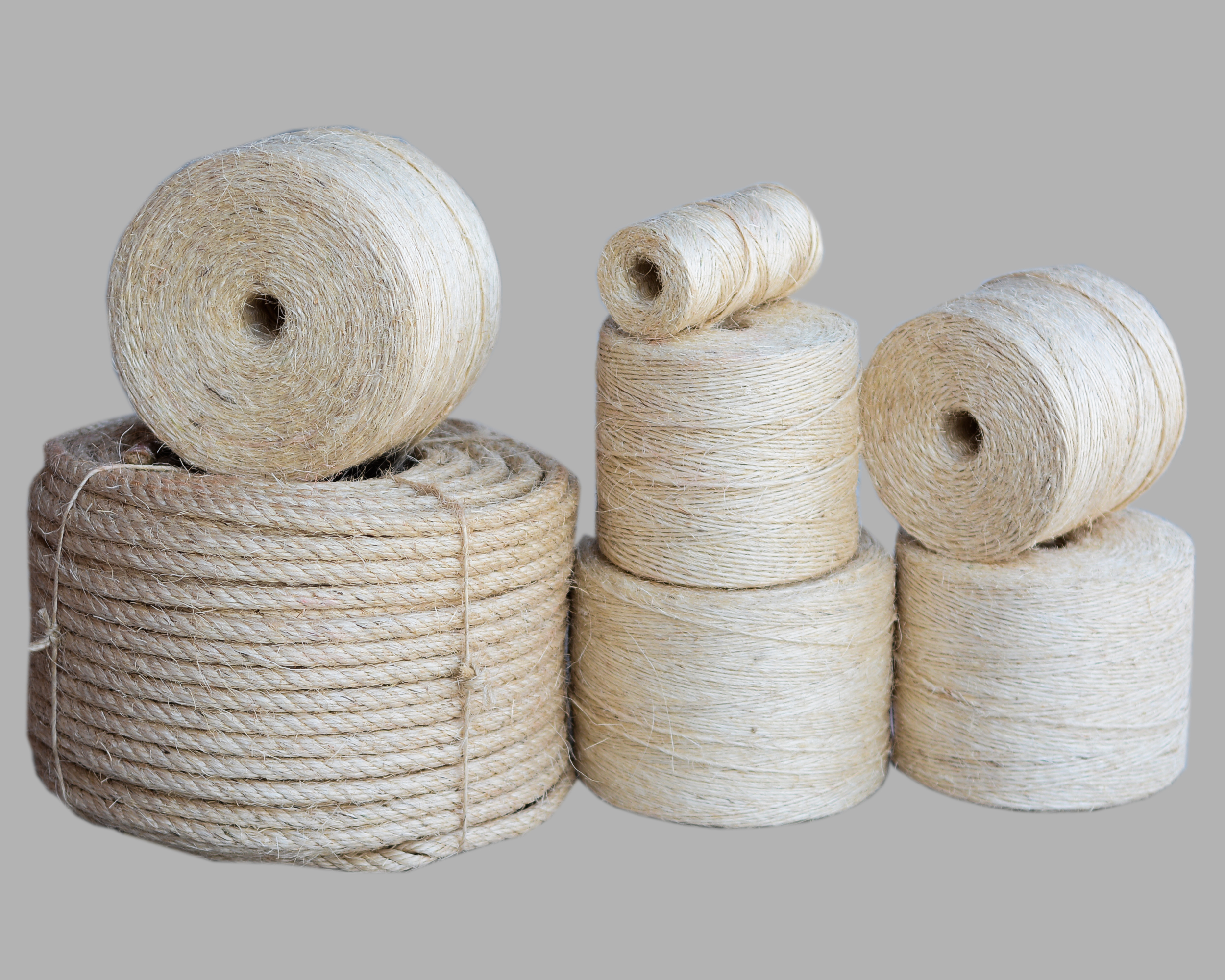 Sisal yarn and twine used as a bailer and binder twine. Trellising material in horticulture.